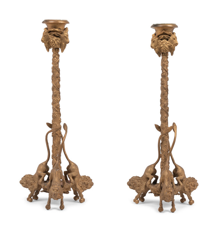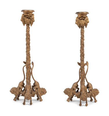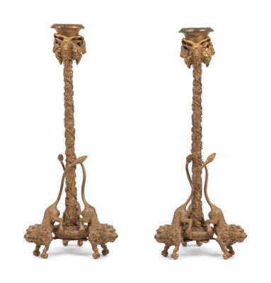 A Pair of Continental Gilt Metal Candlesticks