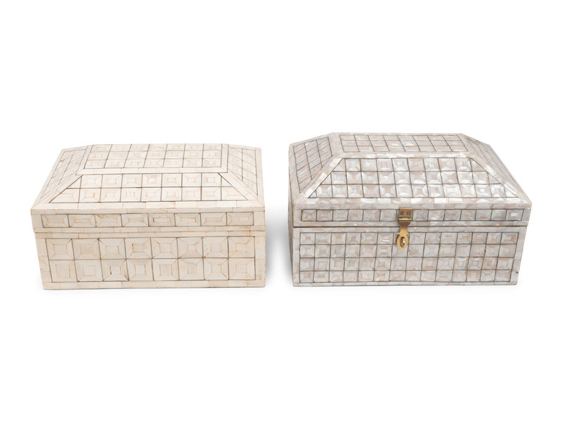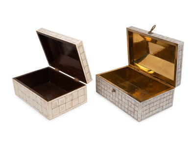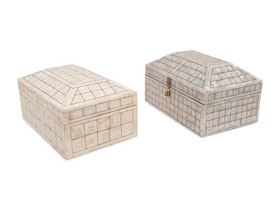 A Mother-of-Pearl Table Casket and a Bone Veneered Table Casket