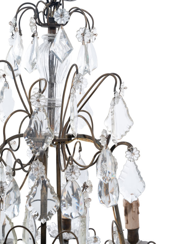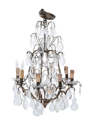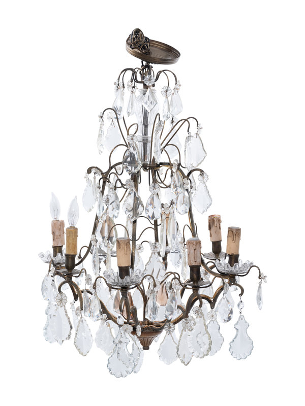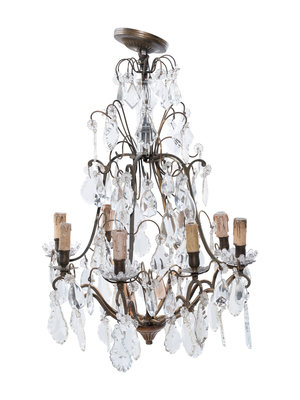 A Continental Gilt Metal and Cut Glass Eight-Light Chandelier