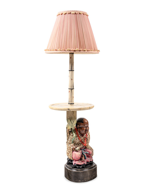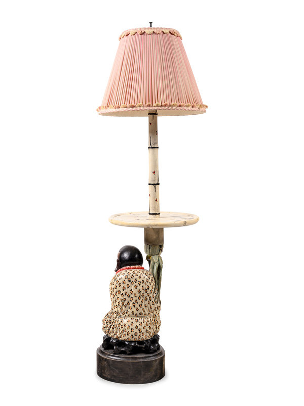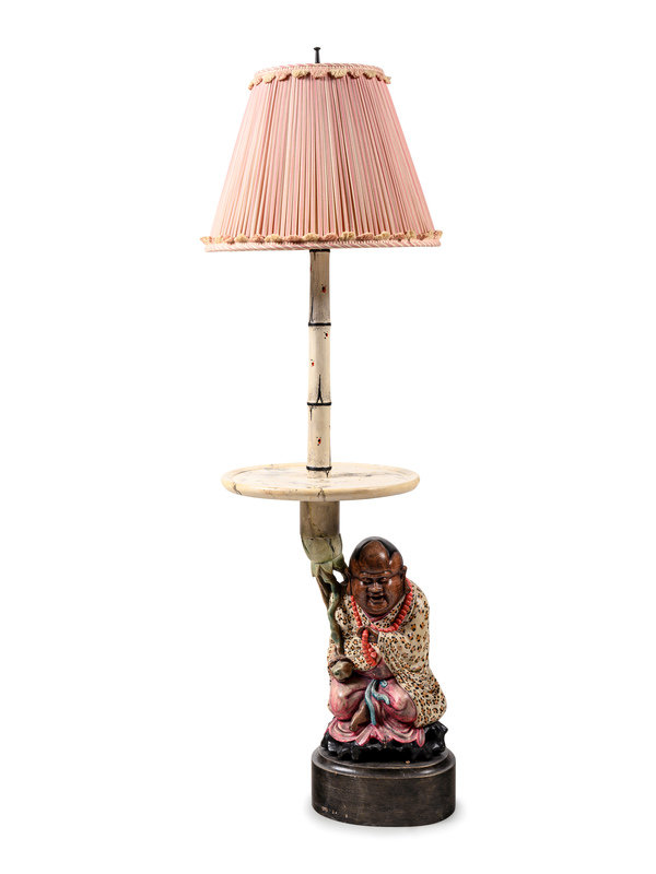APPROVED FOR DONATION A Polychrome Decorated Figural Lamp Table