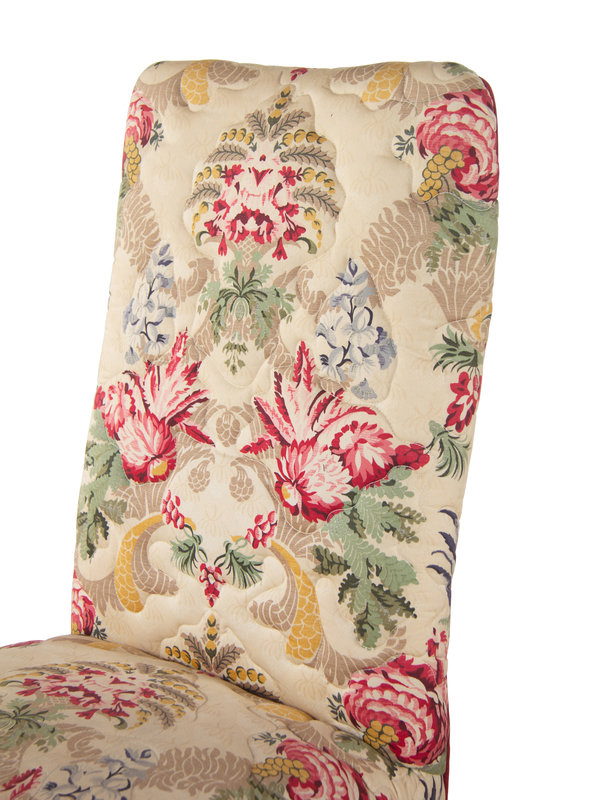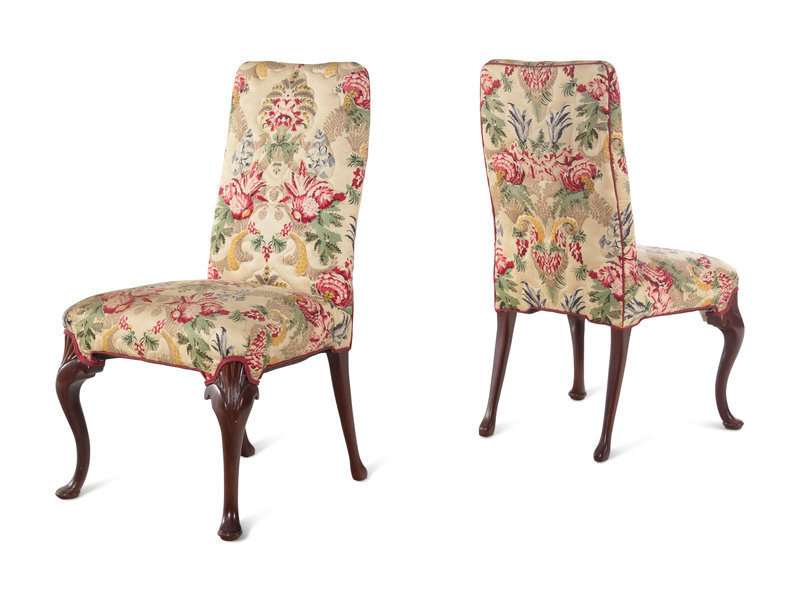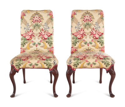 A Pair of Queen Anne Style Side Chairs with Chintz Upholstery