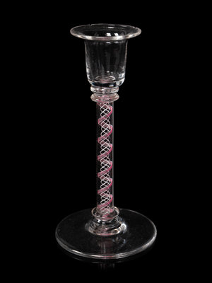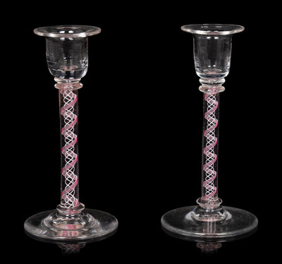 A Pair of Internal Twist Glass Candlesticks
