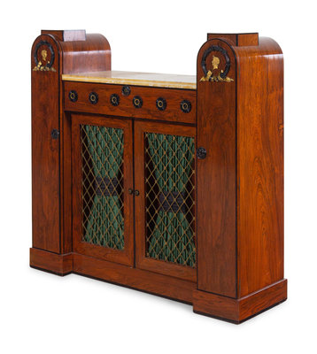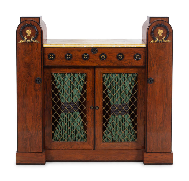 An Unusual Regency Gilt Bronze Mounted and Parcel Ebonized Rosewood Side Cabinet