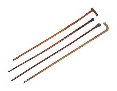 [COMBINED WITH ITEM 2] Four Carved Wood Walking Sticks