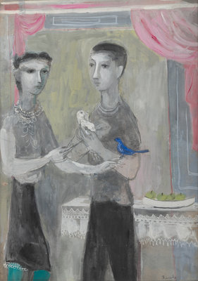 Man and Woman with Two Birds