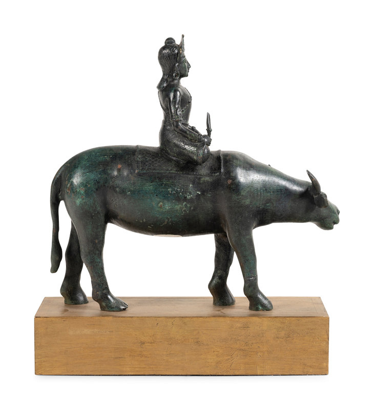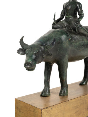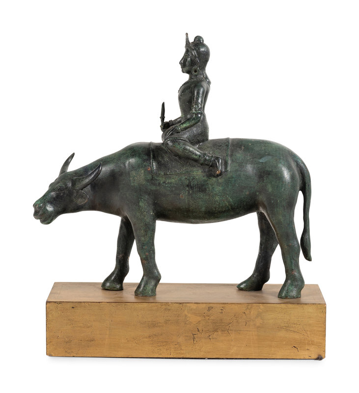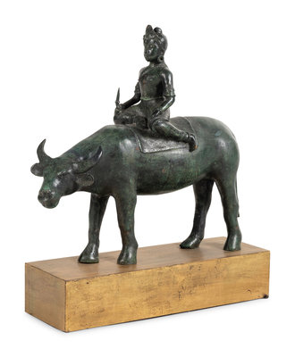 An Indian or Southeast Asian Bronze Model of a Figure on a Water Buffalo