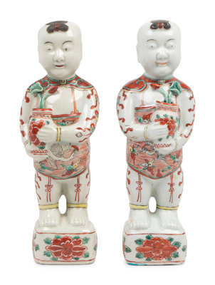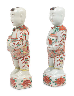 A Pair of Chinese Export Porcelain Models of Standing Boys
