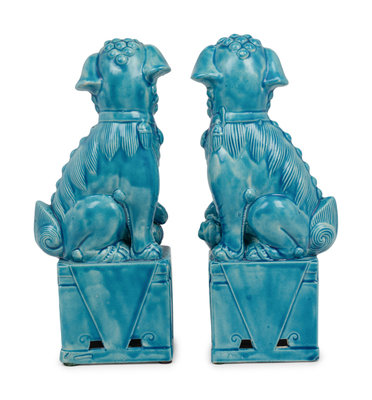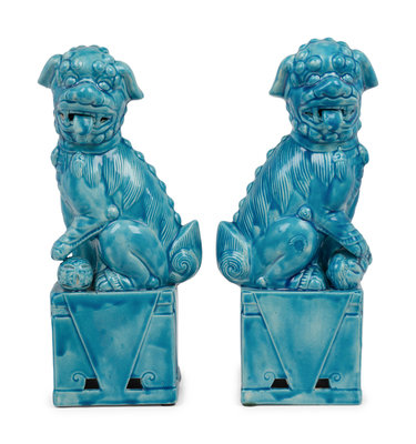 A Pair of Chinese Porcelain Temple Guardian Figures