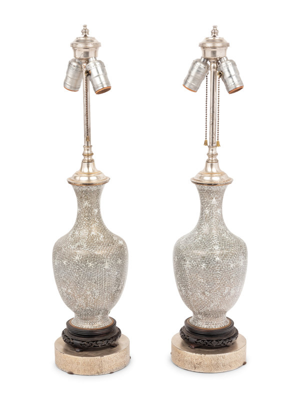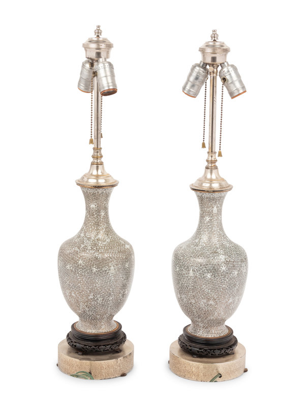 A Pair of Cloisonné Vases Mounted as Lamps