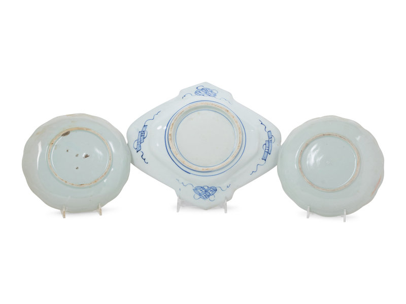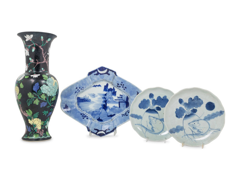 Three Japanese Porcelain Articles and a Chinese Export Porcelain Vase