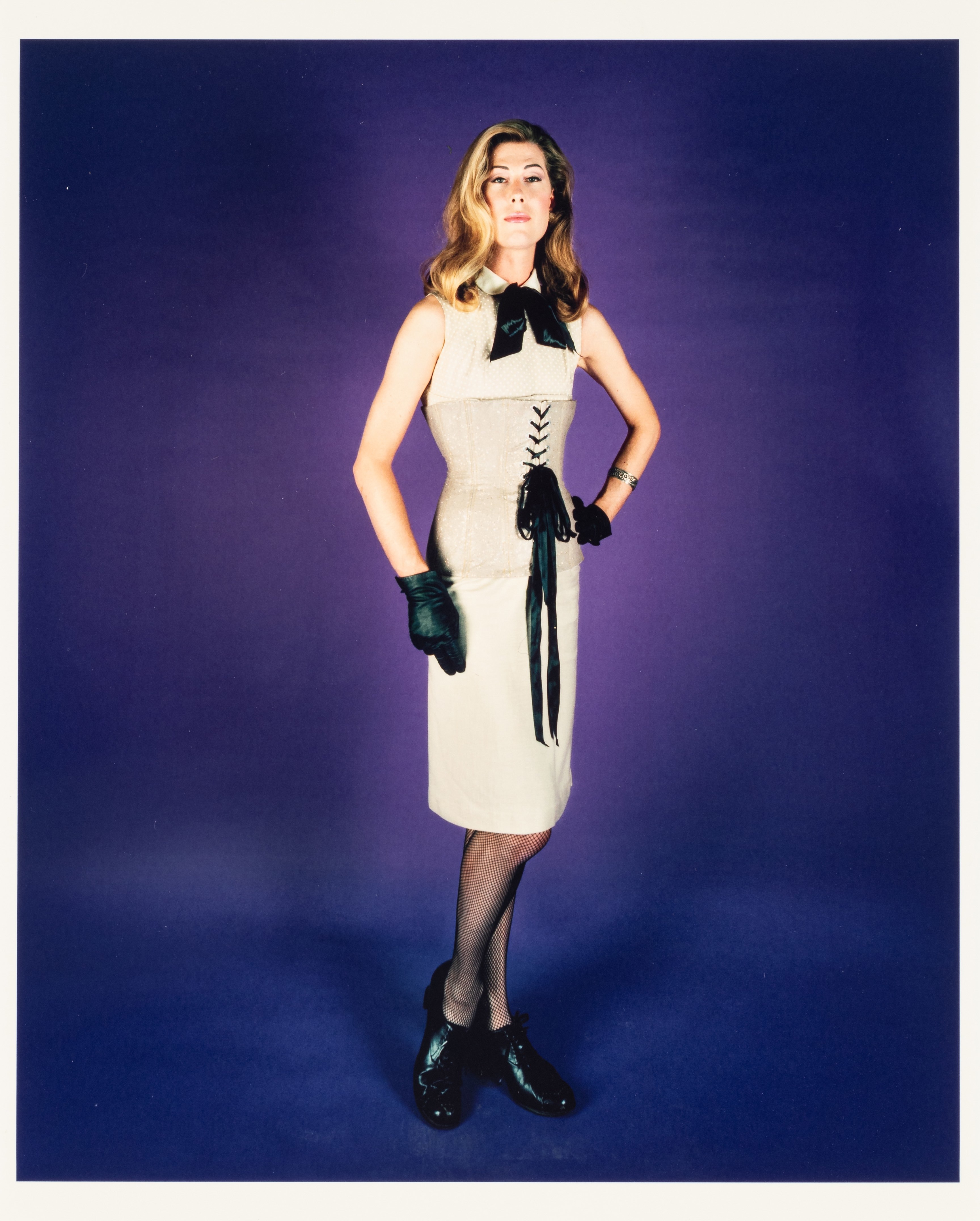 Catherine Opie is a powerhouse photographer known for her portrayals of queer life in the 1990s. With a career spanning over 40 years, the artist showcases poignant themes of people, politics, and places in her photos with a journalistic quality. Seen in the work below, Mx. Justin Vivian Bond depicts a nonbinary subject proudly posing for the viewer in a corset and classic silhouette. In documenting the lives of queer individuals, Opie has preserved the history of a vibrant community that is so often marginalized.