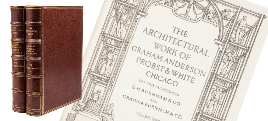 Offered for auction in our October 23 Made in Chicago sale will be a two-volume set of The Architectural Work of Graham, Anderson Probst & White and their Predecessors D.H. Burnham & Co. and Graham Burnham & Co. Signed by Ernest P. Graham. The volumes are comprised of 385 photogravure plates documenting the firm’s work in Chicago, Kansas City and Cleveland, among others cities.
