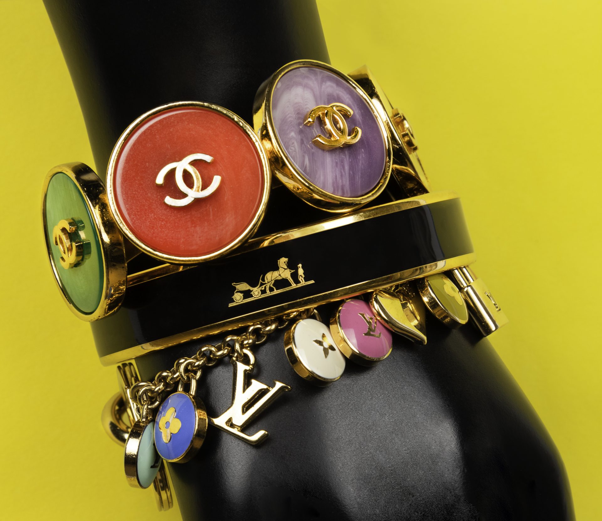 Figure 1. Though the Chanel and LV bangle sold successfully in sale 740, keep an eye out for a variety of costume pieces, like a classic black and gold Hermes enamel bracelet