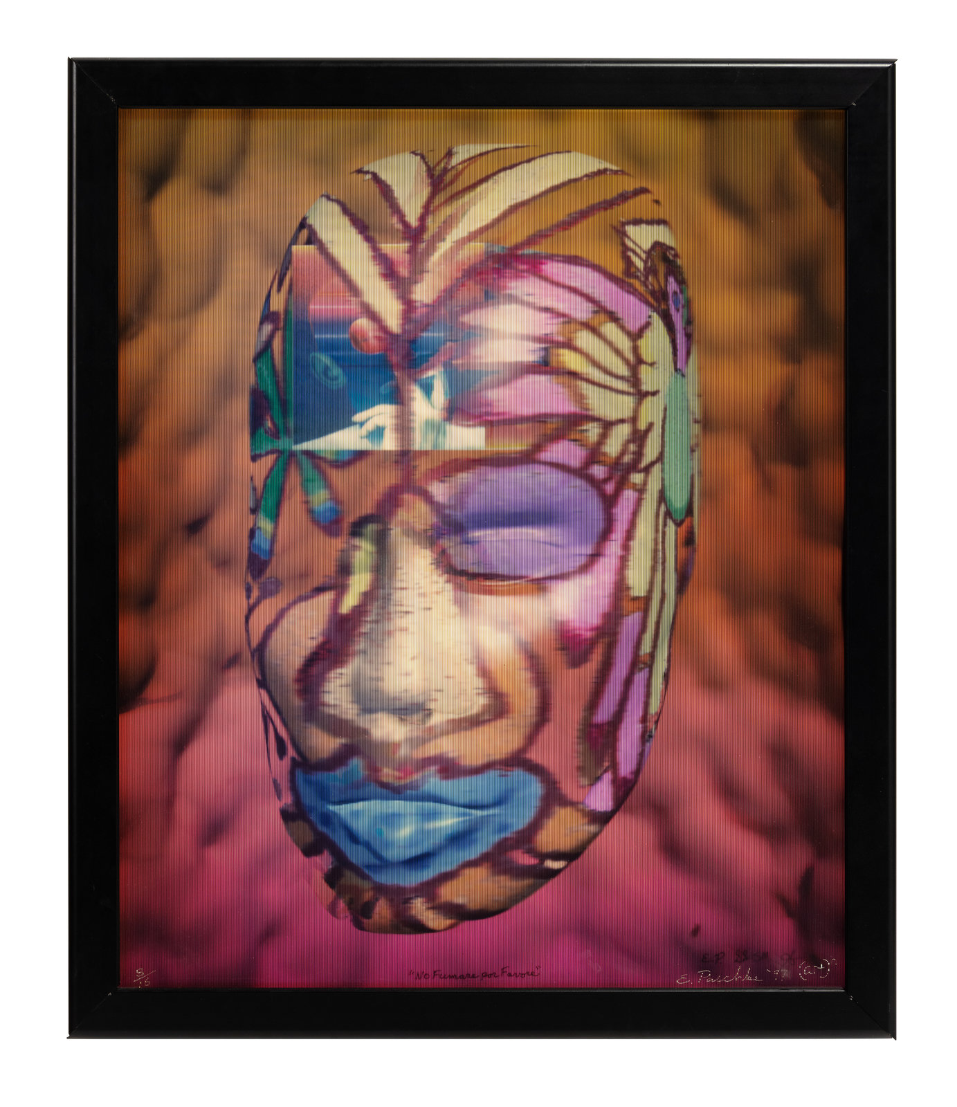 His early work centers on outsider identity, using ironic, comic exaggeration of figures and their costumes (wearable defenses), freaks and their anatomical damages. These characters were the excluded ones, while the viewer is the eager insider observer: a little smug, a little horrified, a little amused, a little sympathetic, like a visitor at a zoo or an extreme entertainment event. As Paschke’s work develops, the viewer is gradually absorbed by the surrounding, immersive, fractured context, like electric flashes, in an abusive culture. In his late work, the individual is replaced by mythic icons of public power, layered with color shards, as if torn from signs. Outsider and insider are then mingled and subsumed. The individual, the autobiographical, the essence of human identity, vanishes. Or it may seem, but Paschke was not a nihilist. He chose ambiguity, contradiction and paradox over finality.