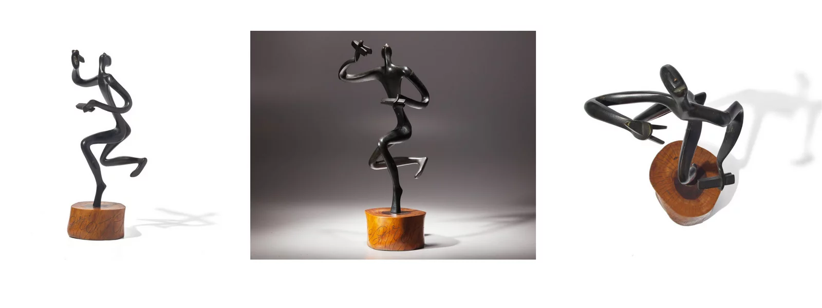 Underwood’s fascination with rhythm and vitality translated directly into his teaching at the Brook Green School of Art, where he urged his students to draw from life models in motion, capturing not stasis but the pulse of life itself. Negro Rhythm embodies this philosophy. Art historian Christopher Neve described the sculpture as “an inspired scribble in the air, the patinated bronze as compulsive as a 12-bar chorus from New Orleans with its insistent syncopated beat... the whole object, twenty-two inches high, an inspired exercise as vividly period as Edith Sitwell’s allegro negro cocktail shaker.” With its sinuous energy and spiraling form, the dancer seems to pivot around an invisible axis, crystallizing Underwood’s lifelong quest to express the movement of the human spirit through sculptural form.