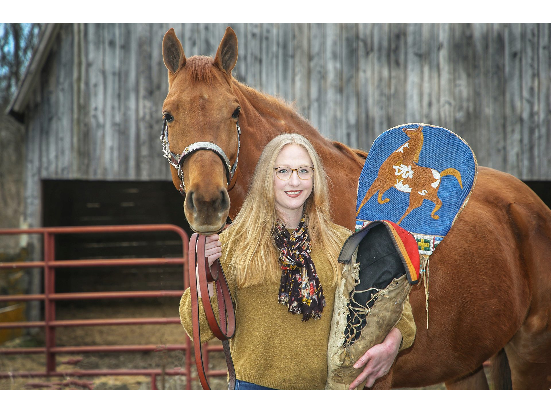 “Native beadwork throughout the United States has been traditionally a woman’s art, adorning everything from clothing, to cradles, to daily work bags and horse regalia. The craft of beadwork evolved from the earlier tradition of using dyed quills, bird or porcupine, to decorate. When European glass beads were introduced by traders, the use of these colorful materials became the popular choice. The creative and technical skills that these women artists have, were and still are, praised in Native communities across the county. For me, this Plateau cradle showcases the artistic expression that goes into a beaded design. The Prancing Pony on the cradle speaks to the importance of the horse in Native cultures, and as an equestrian, really speaks to what fascinated me about Native American history and culture, and how I originally became interested in my field of study.”