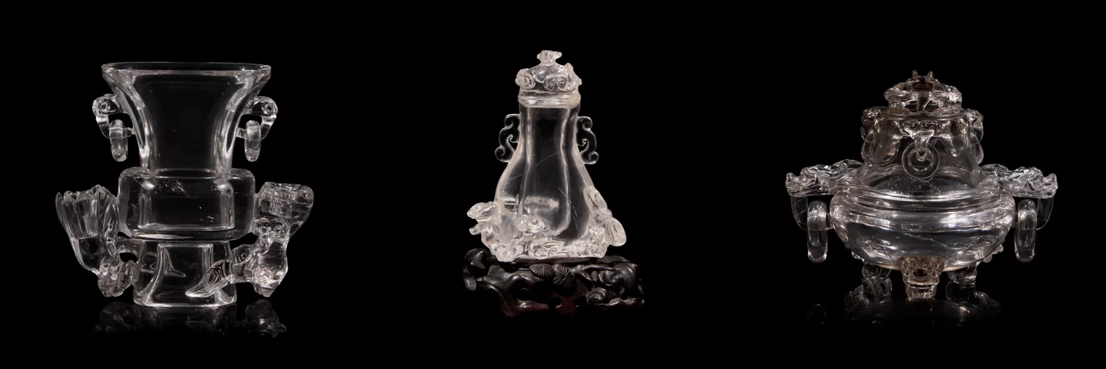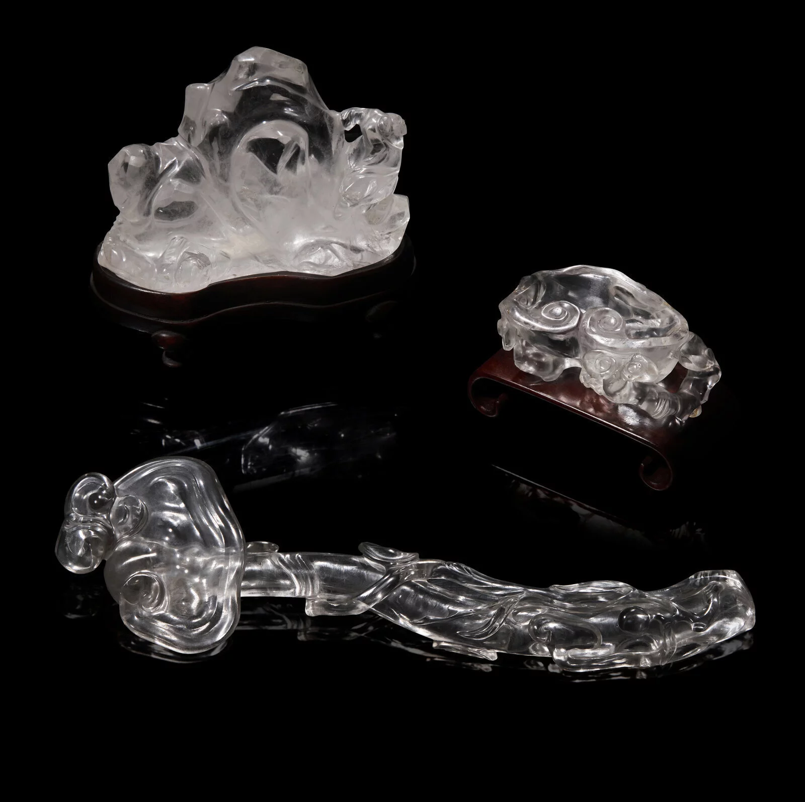 Three Chinese Rock Crystal Scholar's Objects, 19th-20th Century 晚清民國 水晶文玩一組三件 | $2,500-3,500
