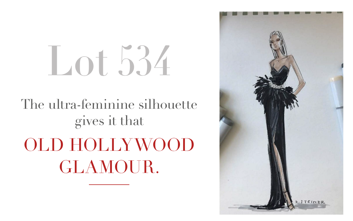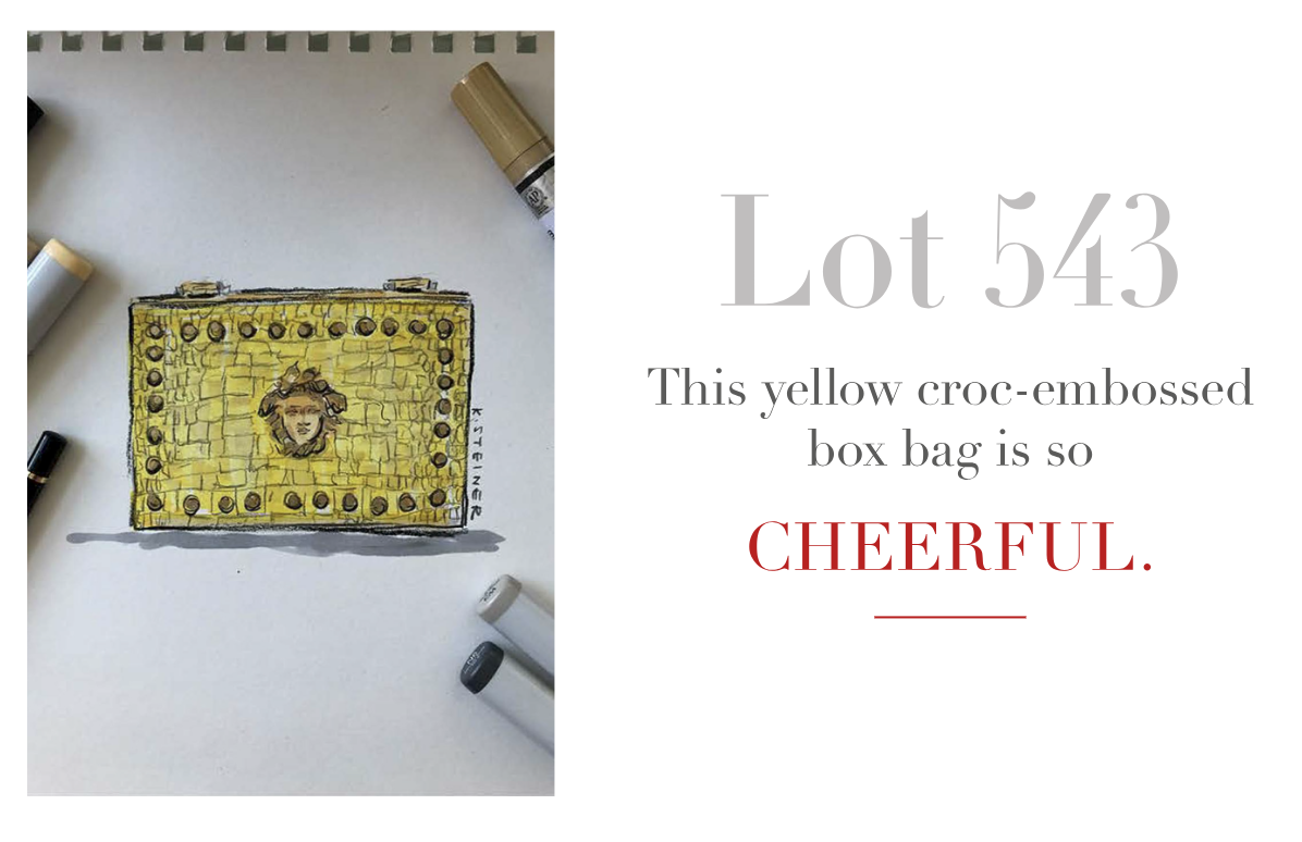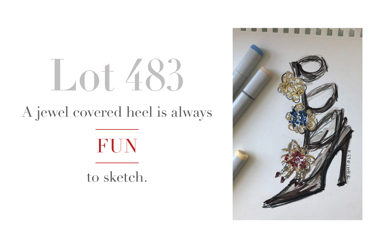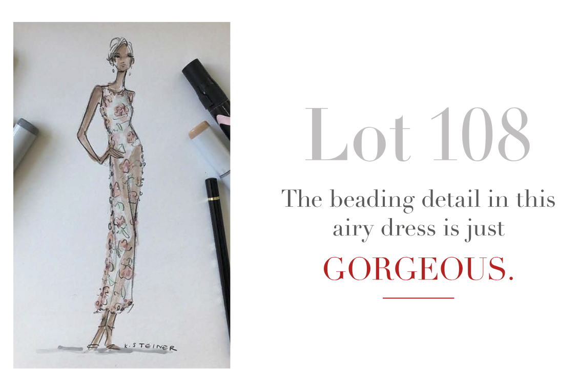 We asked Kristine to sketch her favorites from our upcoming April 8 auction: Spring Fashion & Accessories: 1800–2015.