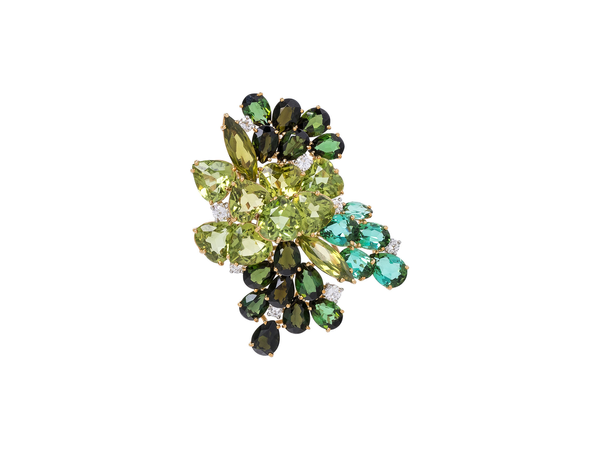 Lot 131 | Olga Tritt, Peridot, Tourmaline and Diamond Brooch | $3,000 – 5,000