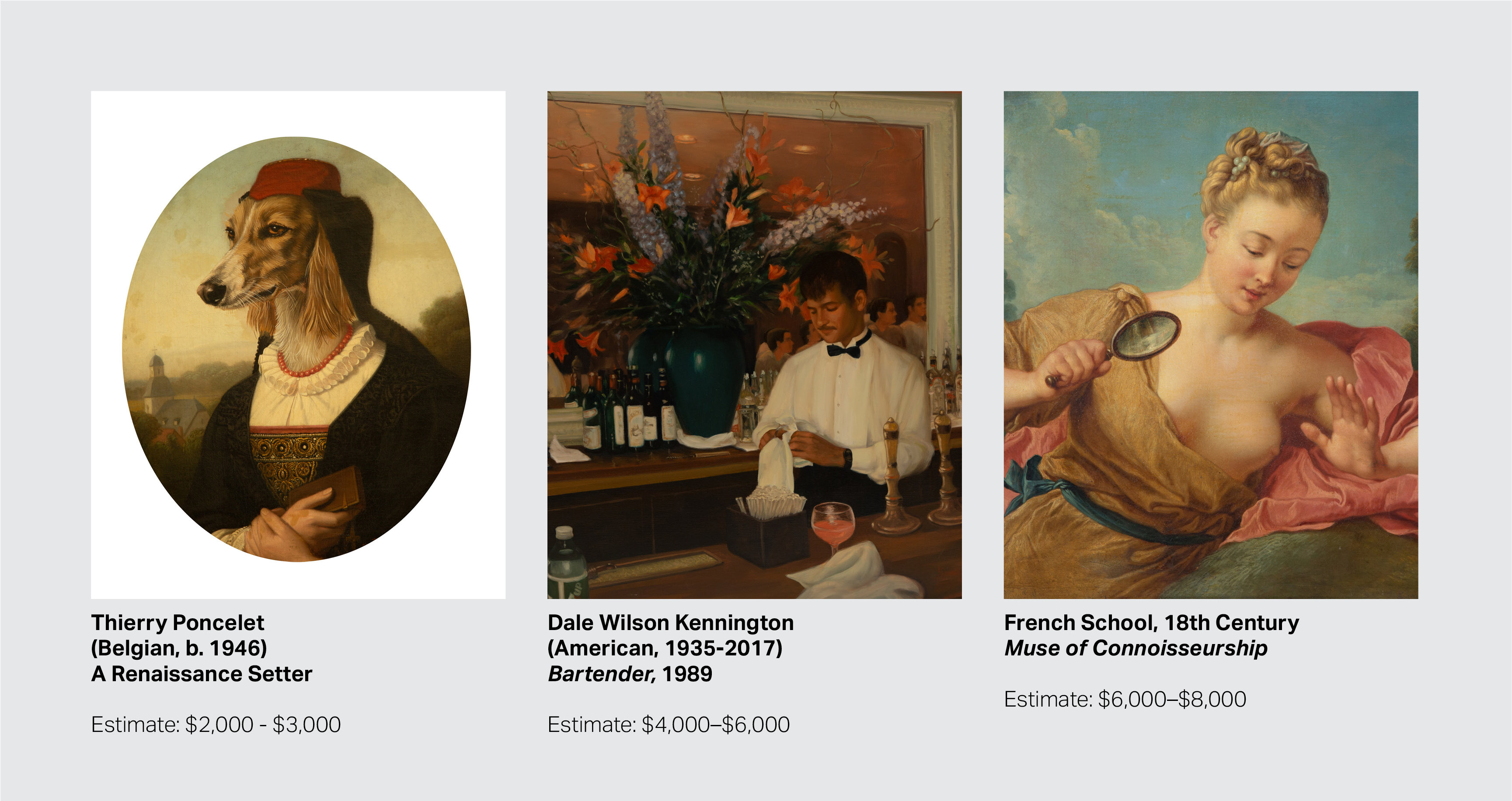 Our first Palm Beach Fine Art sale features Old Masters, 19th century paintings, impressionist, and modern, contemporary and emerging art, all priced attractively for collectors of all ages and tastes. The sale also includes an exquisite group of Outsider Art from the collection of Edith S. Peiser of Boca Raton, Florida. The group features many paintings by the celebrated outsider artist, Purvis Young.