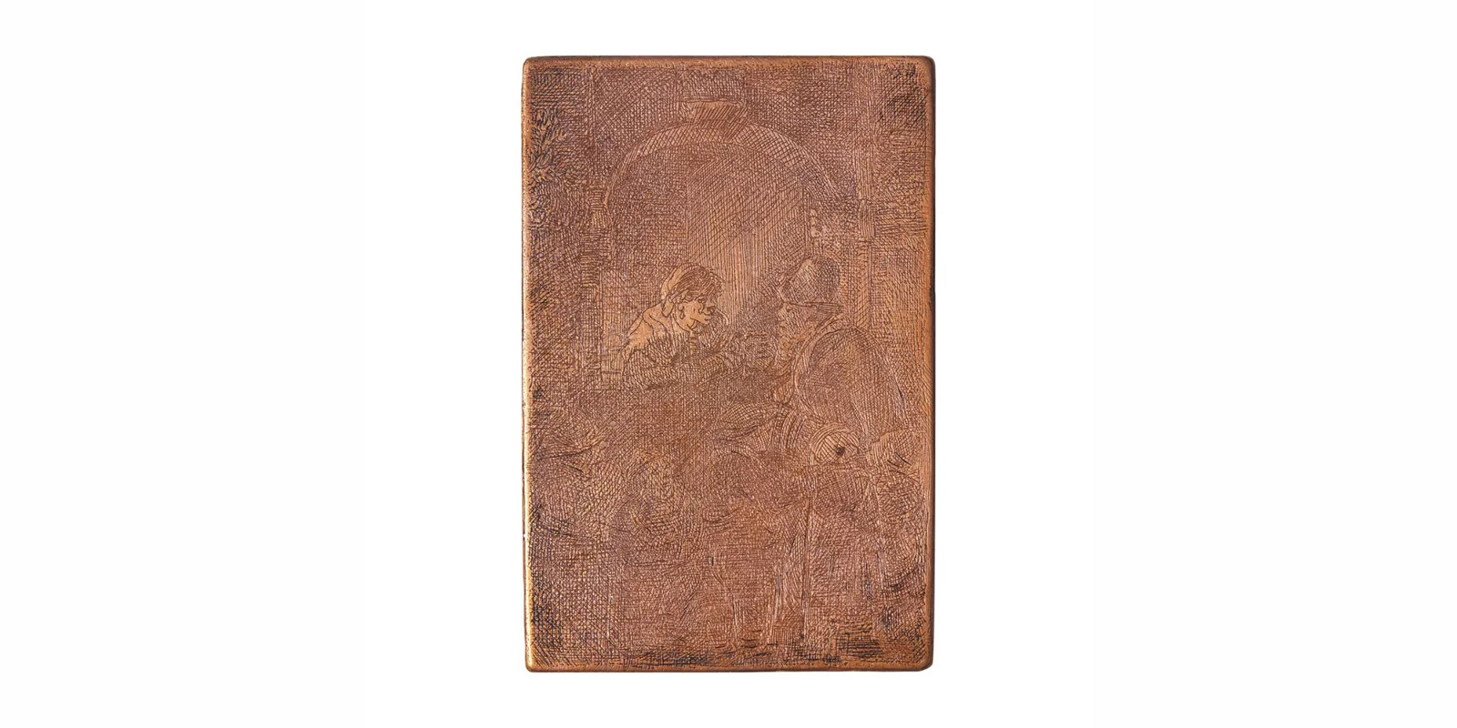 Printing presses exert a great deal of pressure on the copper plates, flattening incised lines over time and leading to a loss of precision or tonality in the printed image. This can be seen especially in Rembrandt impressions. When comparing impressions pulled from the copper plate during the artist’s lifetime to impressions centuries later, the diminishing quality of the image can be extraordinary. For Rembrandt’s Woman at a Door Hatch Talking to a Man and Children (1641), Lot 135, Alvin-Beaumont, who acquired the plate in 1906, recognized its value as a work of history and art, and had the plate varnished for presentation rather than focus on reprintings.ii Other owners of Rembrandt’s plates, who wanted to print the images, took it upon themselves to deepen and sharpen the flattened lines with their own hand. This ‘reworking’ of the plate now helps us date the impressions and has become one of the largest driving factors in the prices of Rembrandt prints on the market with twentieth-century impressions generally being much less valuable than seventeenth-century impressions.