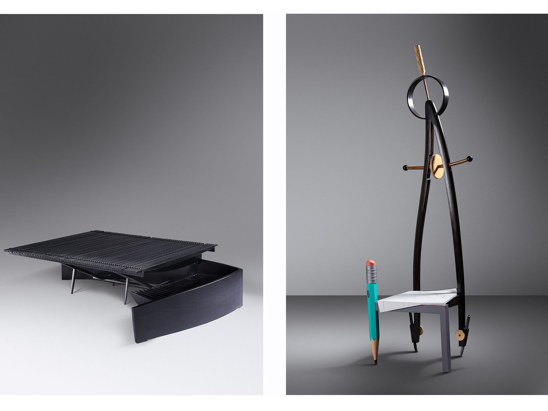 Left: Right: Thomas Hucker (b. 1955), Slatted Table, 1991. Estimate: $2,000-$4,000. Right: Alphonse Mattia (b. 1947), Architect’s Valet, 1991. Estimate: $3,000-$5,000.