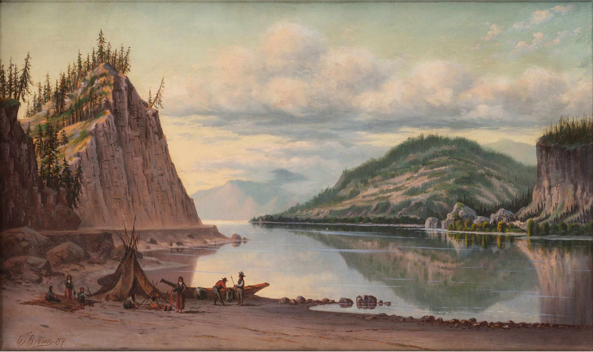 The top lot of the auction is expected to be an oil on canvas by Grafton Tyler Brown (1841 – 1918) entitled Mitchell’s Point, Looking Down The Columbia River. Born in Harrisburg, Pennsylvania in 1841, Brown moved to California in 1858 where he became California’s first African American city view artist and lithographer. As a prolific and talented topographic artist and lithographer, he created images that showcased the natural beauty and essential character of the developing frontier. This painting depicts a breathtaking Oregon river landscape as a group of Wisham Native Americans make camp along the shore. The painting is estimated to bring $30,000 to $50,000.