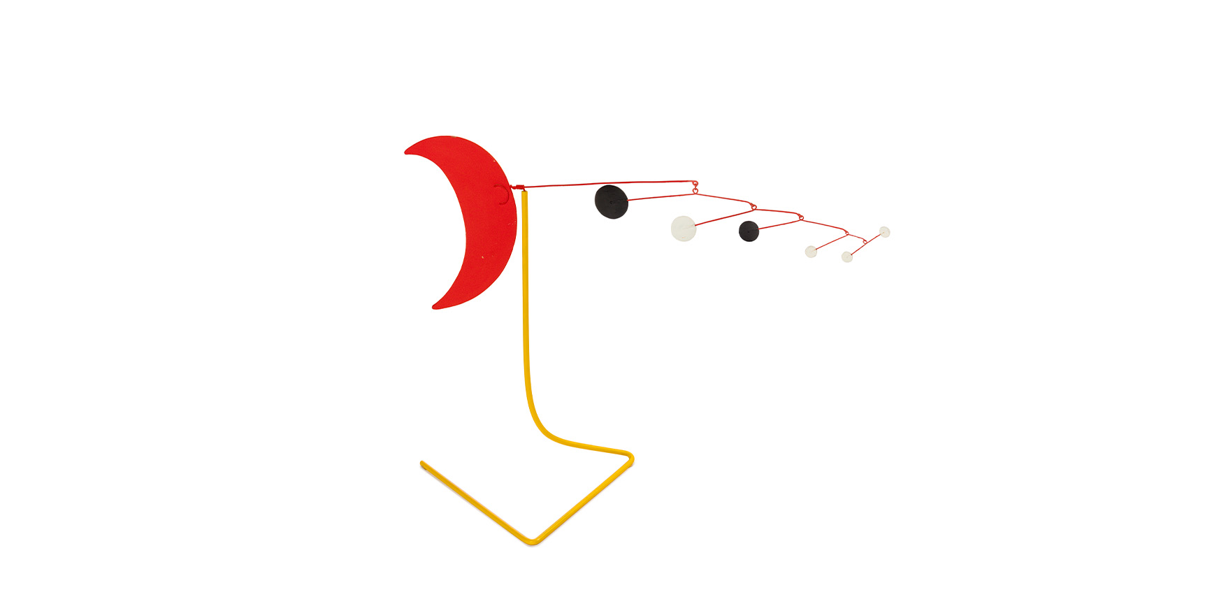Calder’s instantly recognizable kinetic sculptures revolutionized three-dimensional art in the early 20th century. In 1926, the young artist began a seven-year sojourn in Paris, where he absorbed European Modernism and was particularly influenced by the biomorphic forms, flat planes, and primary colors used by Piet Mondrian and Joan Miró. Calder used these motifs to invent his own artistic language, constructing sculptures brimming with dynamism and vibrancy.