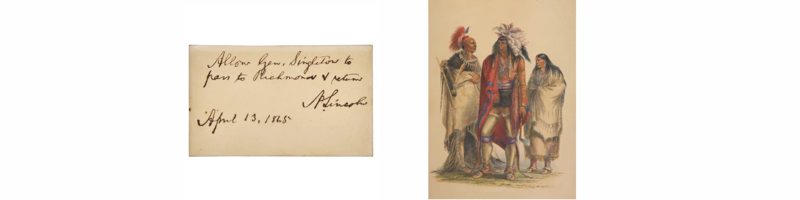Tripling its $20,000–30,000 estimate, this autograph note signed by Abraham Lincoln and dated April 13, 1865—the day before his assassination—authorizes General James W. Singleton to pass through Union lines to Richmond. One of only a handful of documents written by Lincoln in the final days of his life, the note reflects his direct involvement in early Reconstruction efforts and carries exceptional historical resonance.