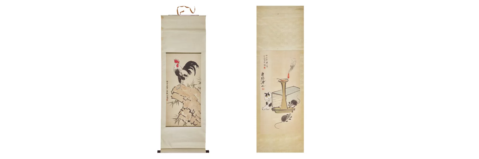 The top lots of the sale were Chinese paintings, including Qi Baishi and Xu Beihong’s Cat and Mice (Lot 16) and Xu Beihong’s Rooster on a Rock (Lot 15), each estimated at $60,000 – 80,000 and both selling for $89,400. These works came from the estate of General Han-Chien Chueh (1901–1972) of Taiwan, a distinguished Nationalist commander during the Second Sino-Japanese War and a celebrated calligrapher known for his “Boyun style.” A close friend of Qi Baishi, Chueh amassed an extensive collection of paintings and calligraphy, portions of which were later donated to public institutions in Shanghai and Taipei. The present lots, consigned by his grandchildren, offered collectors a rare connection to both Chueh’s legacy and his friendships with China’s artistic masters.