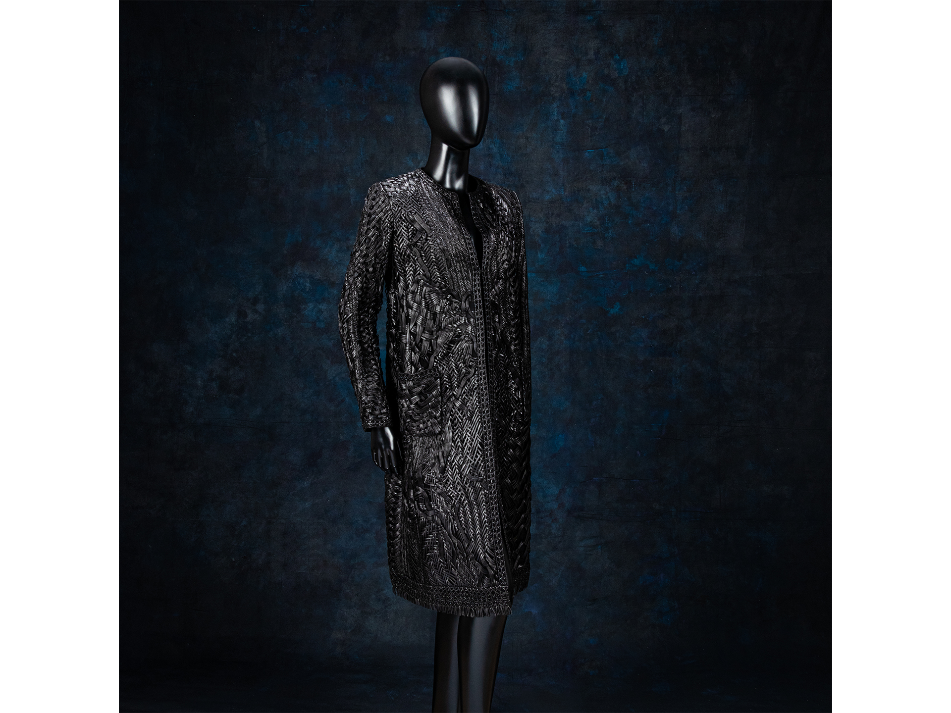 American couturier Ralph Rucci also features prominently within the sale. One of only three Americans in history invited by the Chambre Syndicale de la Couture Parisienne to present at haute couture in Paris, Rucci upholds the traditions of French couture in his materials and techniques, infused with modern innovation. Meticulously detailed items by Rucci include a jacket made entirely of hand-woven and knotted leather strips (estimate: $2,000-4,000); a laser cut and hand-embroidered leather jacket (estimate: $2,000-3,000); and a jacket made of ostrich feathers encased in layers of silk net (estimate: $1,000-2,000).