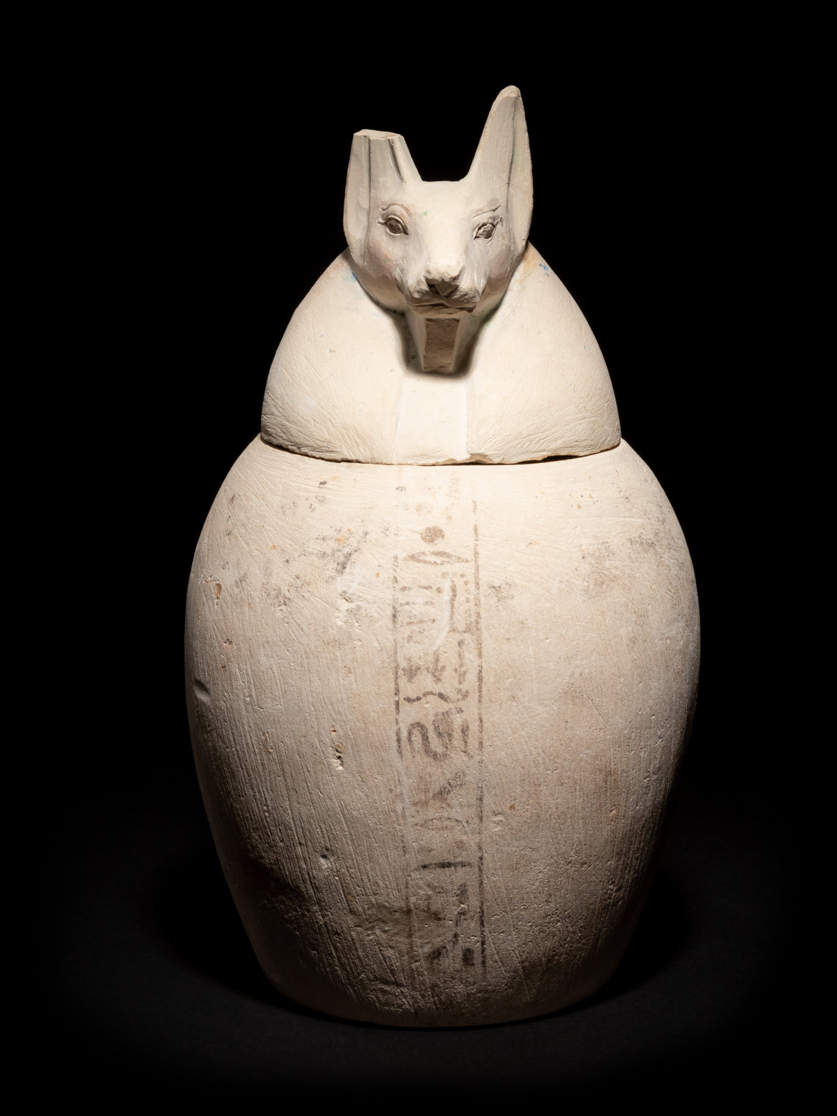 A Set of Four Egyptian Painted Limestone Canopic Jars