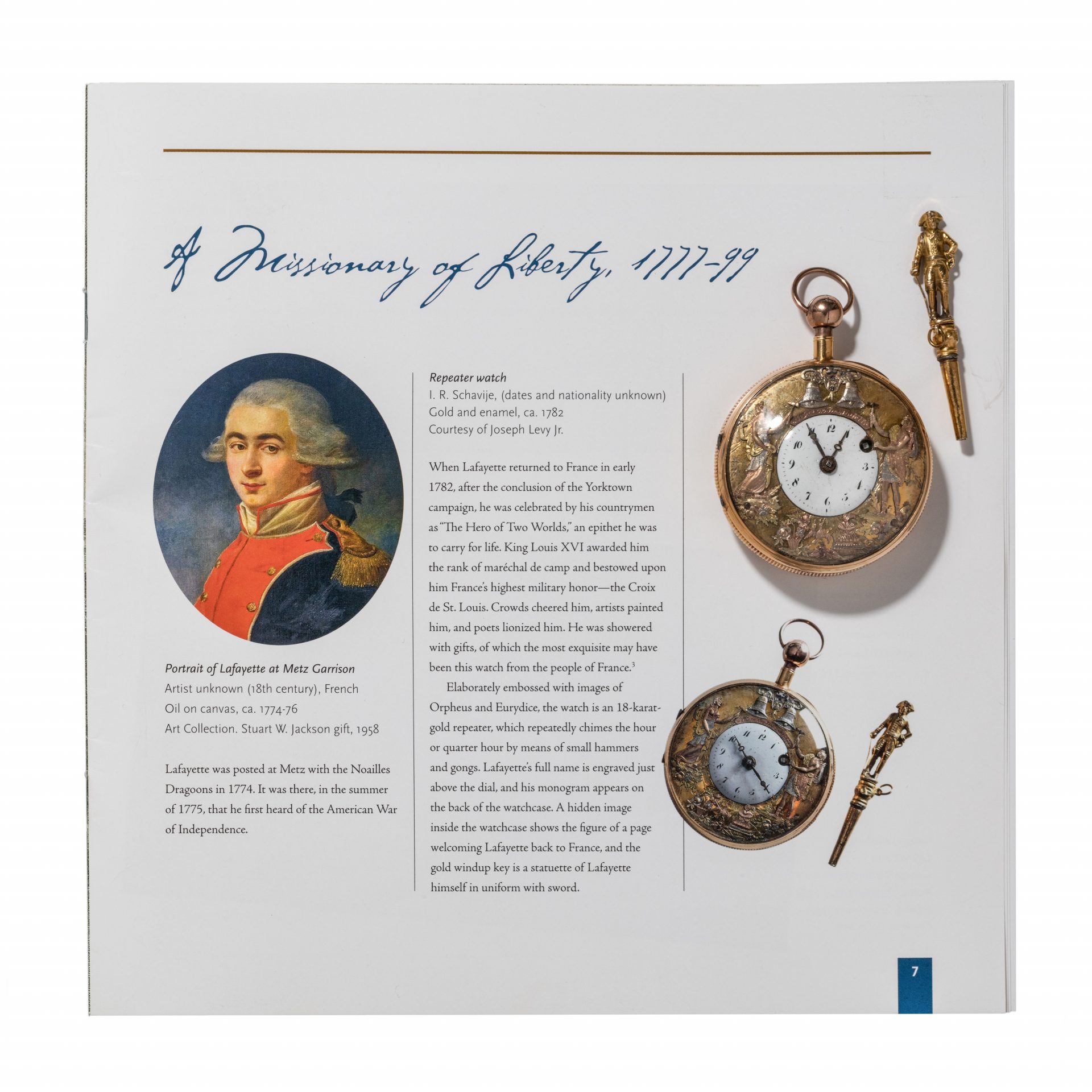 The collection of Mrs. Joseph Levy, Jr. includes over 30 pocket watches spanning the 18th through early 20th centuries, with multiple minute repeater pocket watches. Amassed over a lifetime, this carefully curated collection boasts a number of rare and unique timepieces. A Historic 18K Tricolor Gold Open Face Jacquemart Automaton Quarter Repeater Pocket Watch (lot 70), is decorated with figures of Orpheus and Eurydice and engraved Mq de La Fayette. Circa late 18th or early 19th century, this pocket watch is reputed to be from the collection of the Marquis de Lafayette, the French and American Revolutionary War figure. It holds a presale estimate of $10,000-20,000. Another highlight from this collection is a Patek Philippe, Spaulding & Co., 18K Yellow Gold Minute Repeater Open Face Pocket Watch from 1906, estimated at $5,000-7,000.