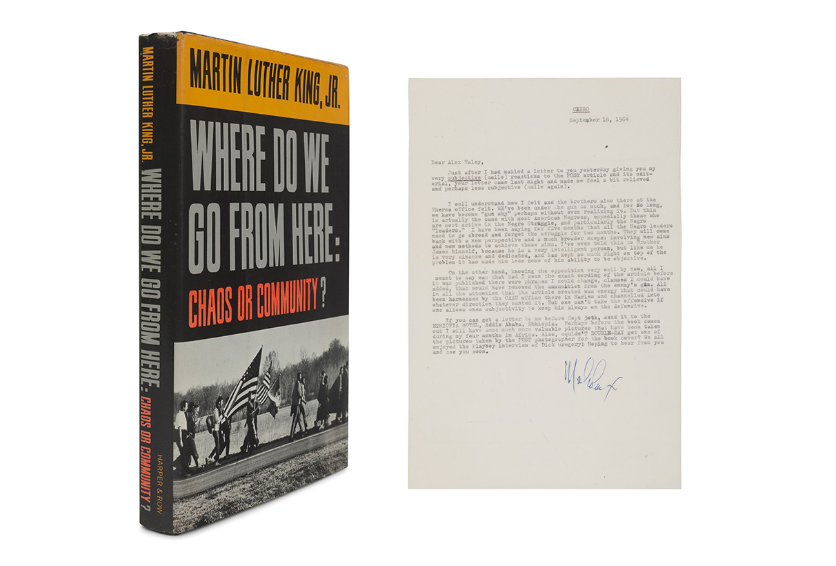 African Americana, offered in a separate session, performed exceptionally well as demand has continued to rise in this category. A copy of Martin Luther King Jr.’s Where Do We Go from Here: Chaos or Community? (lot 266) sold for $8,125 against a presale estimate of $3,000-5,000. This first edition presentation copy was inscribed by King on the front free endpaper. Also highlighted in this session was a typed letter signed from Malcom X to author Alex Haley from 1964 (lot 267), one of a series of responses to the editorial, “The Lesson of Malcolm X” published by the Saturday Evening Post on September 12, 1964.
