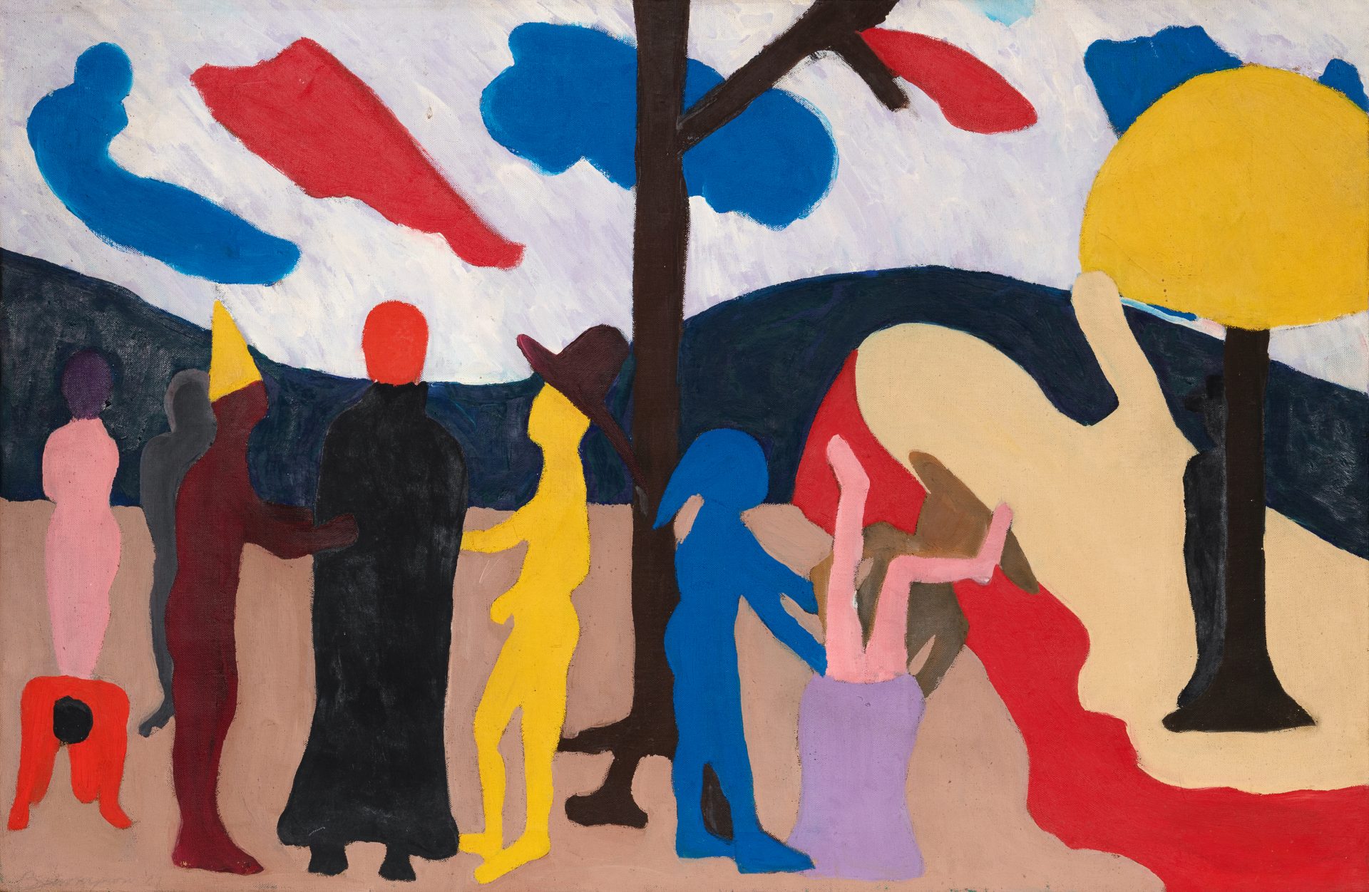 The top lot of the auction was Bob Thompson’s 1961 ambiguously allegorical painting The Sack (The Snook) which saw fiercely competitive bidding from all sectors and ultimately sold on the telephone for $212,500, more than ten times the strategically conservative $20,000 to 30,000 estimate. Zack Wirsum, Senior Specialist of Post War and Contemporary Art, said of the work, “This rare, early example from Thompson’s tragically brief career was an exception in both content and scale. In addition, the work was part of a single private collection prior to the sale, another contributing factor to the incredible result. The painting depicts a staggered arrangement of figures – some crowned in wide brimmed hats and dunce caps, others lurking ominously behind trees and others still alarmingly ensnared in sacks and cloaks – all in active gestural monochrome, evoking more dreamscape than landscape. The universal themes of capture, loss and surrender that carry through much of Thompson’s work reverberate with sustained resonance in The Sack.”