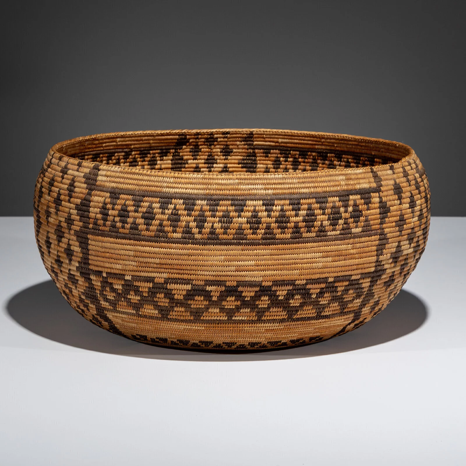 Lot 338 | Exceptional Mono Basket, with Rattlesnake Bands, early 20th century Sold for $8,320