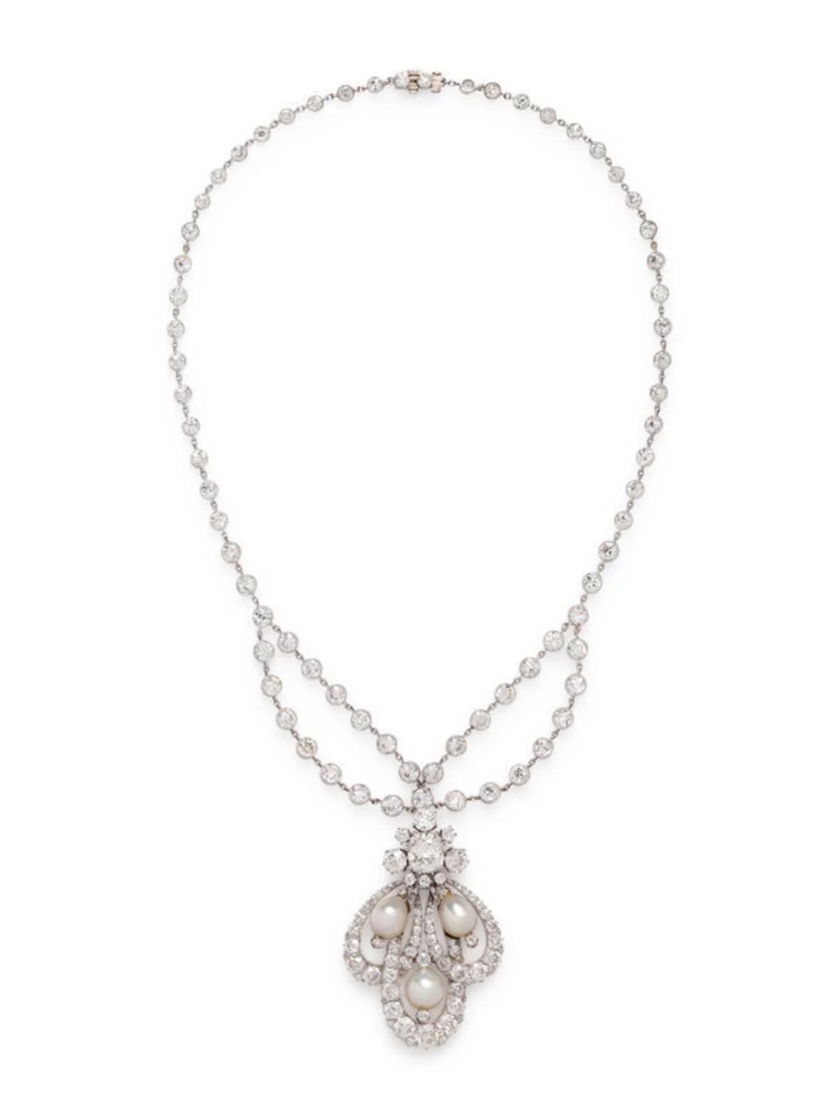 Lot 168 | Antique, diamond and natural pearl necklace sold for $54,400