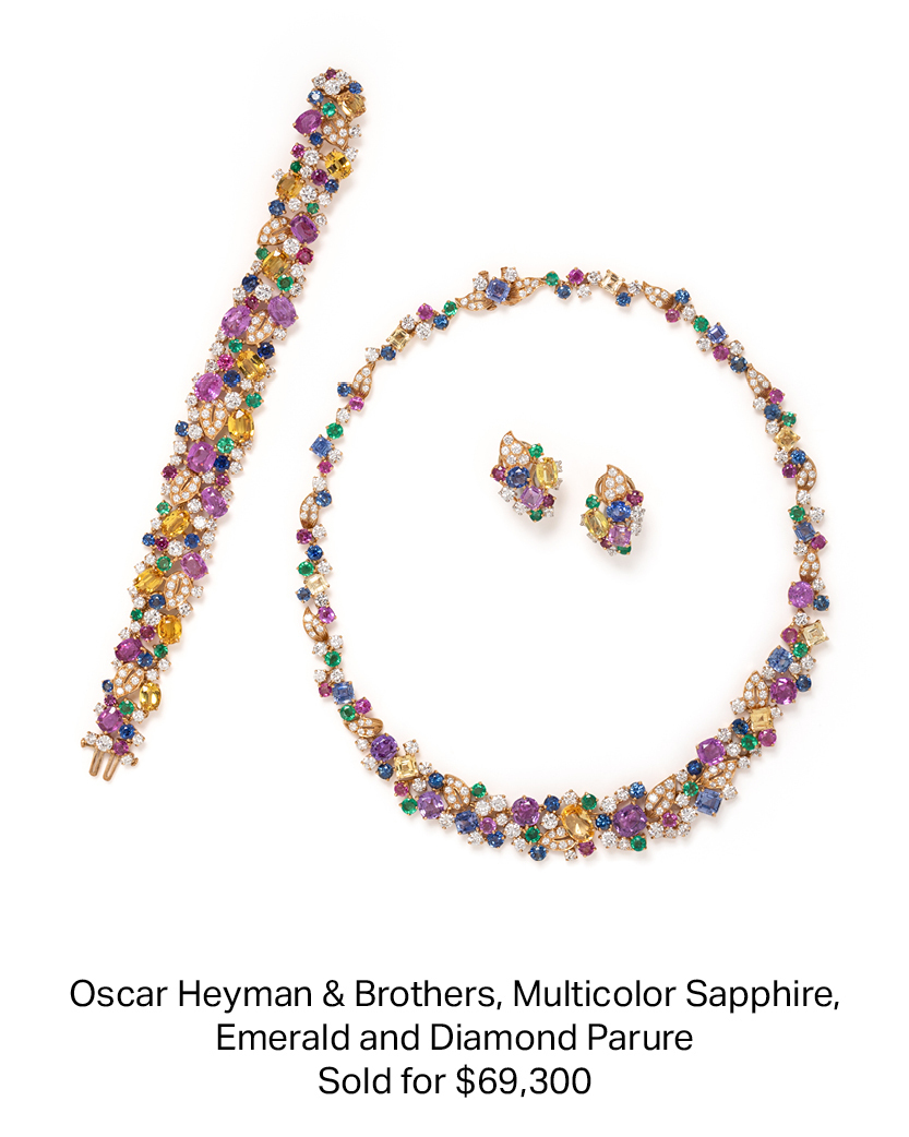 Lot 276 | Oscar Heyman & Brothers, Multicolor Sapphire, Emerald and Diamond Parure