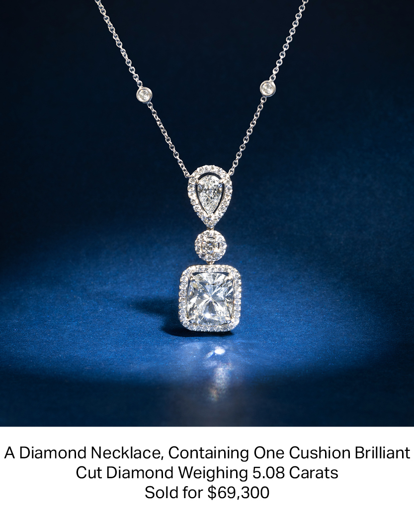 Lot 57 | A Diamond Necklace, Containing One Cushion Brilliant Cut Diamond Weighing 5.08 Carats