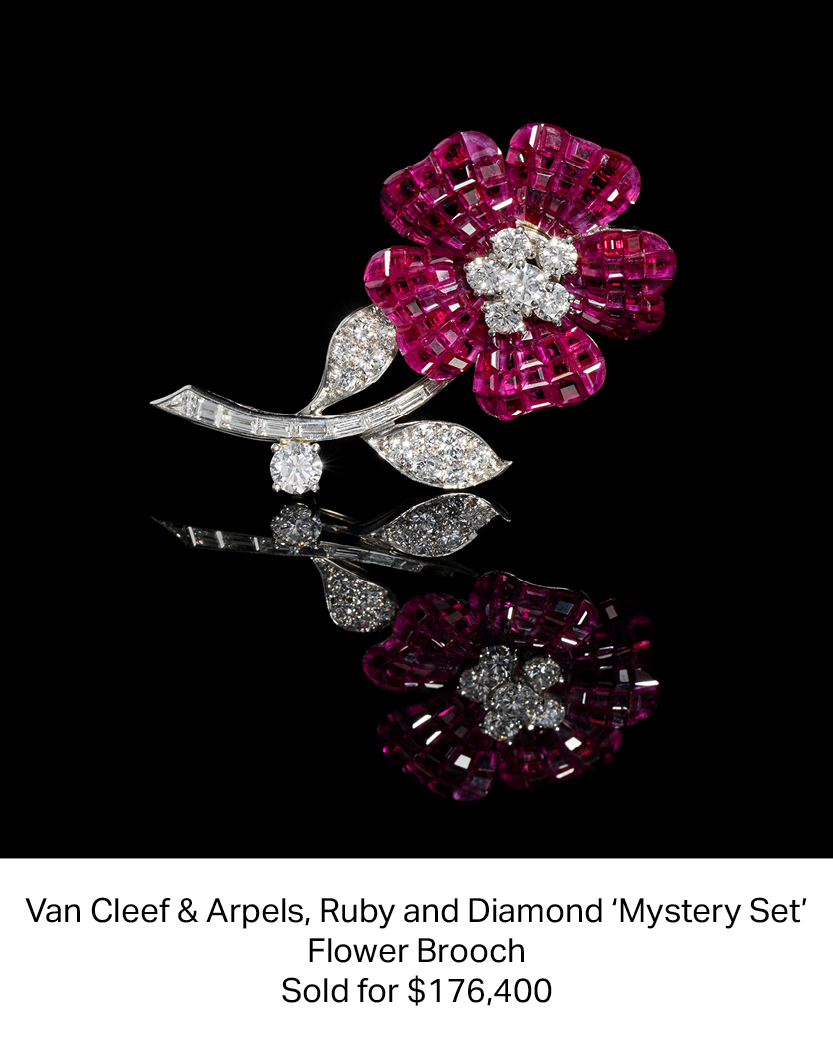 Lot 117 | Van Cleef & Arpels, Ruby and Diamond ‘Mystery Set’ Flower Brooch