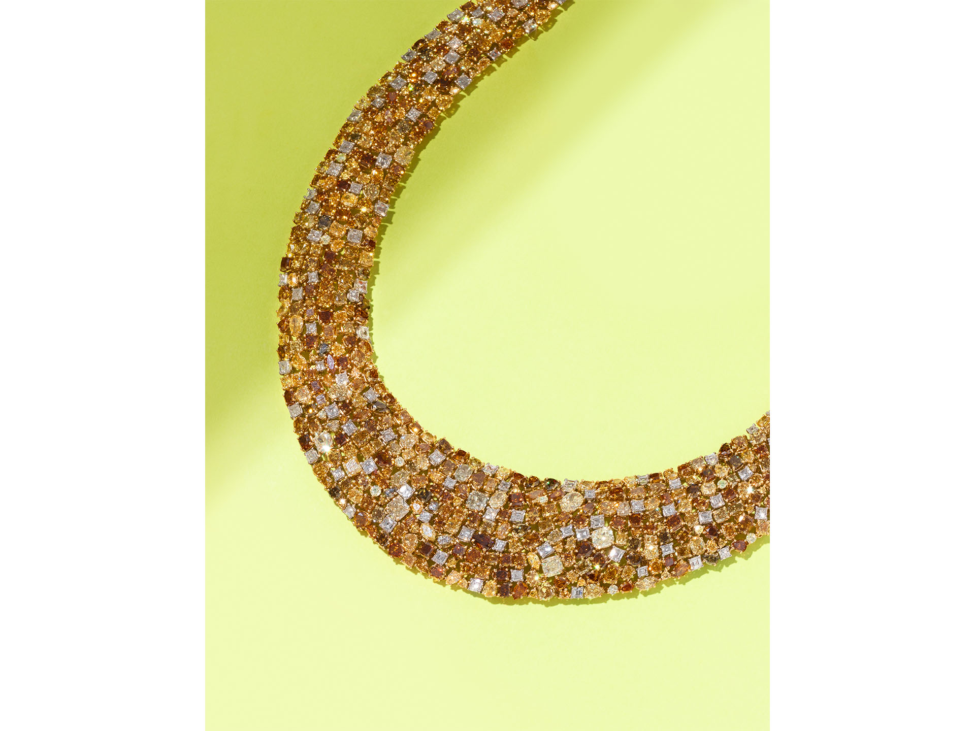 Lot 198 | Oscar Heyman, Diamond and Colored Diamond Bib Necklace | Estimate: $80,000 – $120,000