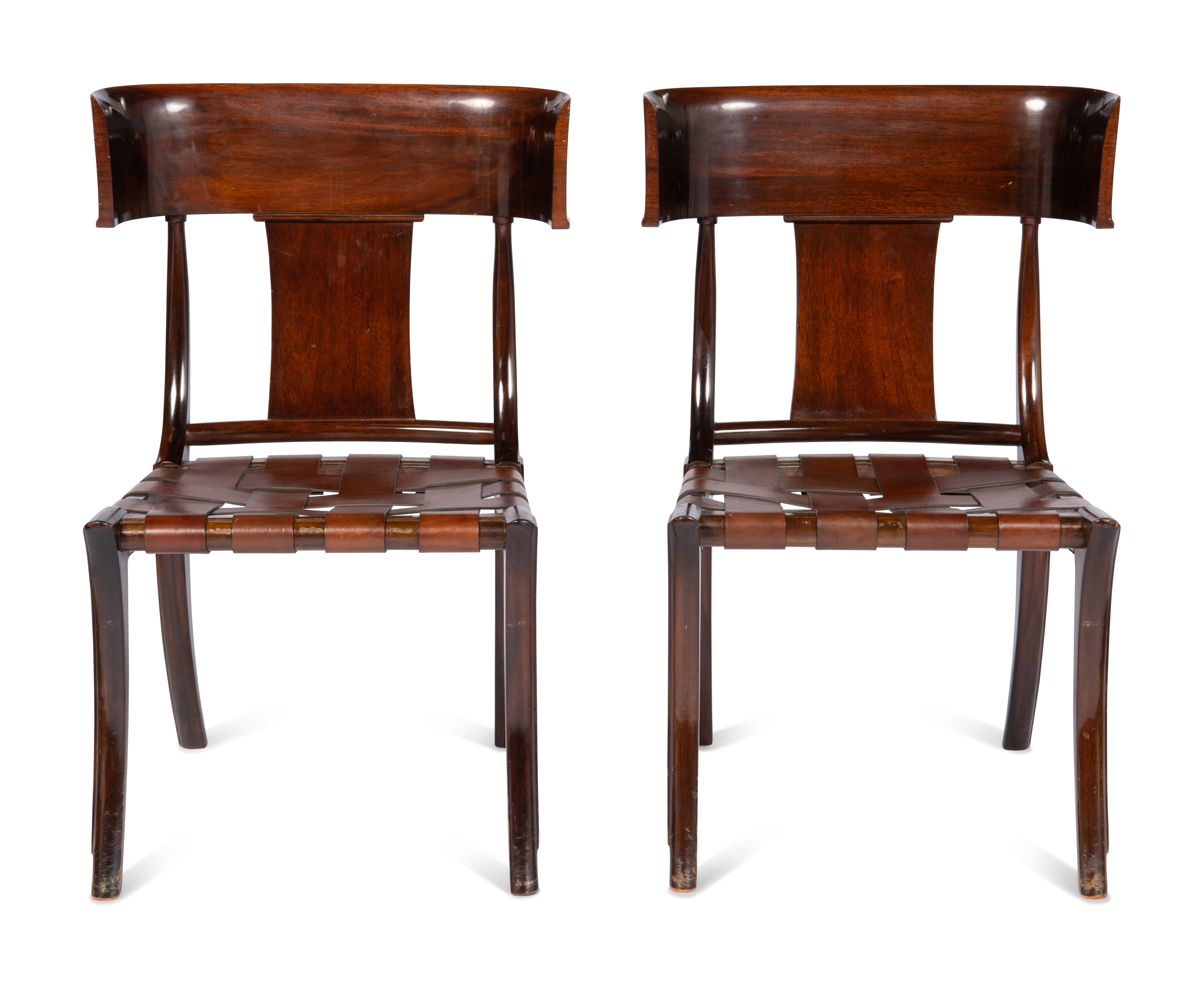 Collins was inspired by Art Deco and French mid-century design, which are exhibited in the present collection. The Macassar ebony chair back with its stepped outline mirrors the great architectural masterpiece of the New York skyline, the Empire State Building, and likely dates to a similar period in the 1930s. He was also passionate about contemporary photography and artwork, reflected in a suite of works by Mary Pinto from her series of cyanotype photograms – silhouetted botanicals – which worked beautifully in the blue study alongside the desk in the manner of Jean Royère. Highlights of the auction also include a Karl Springer console table, a pair of mahogany Klismos chairs, and custom silk sofas.