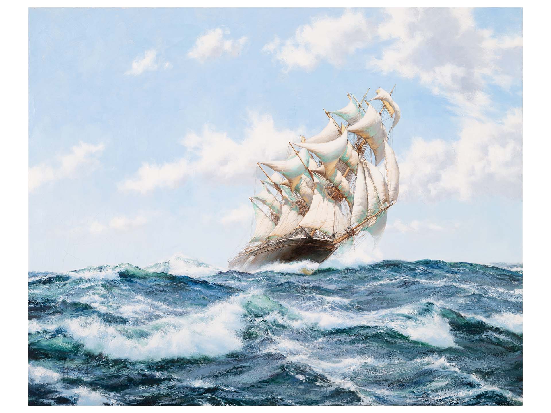 Lot 50 | Montague Dawson, Onward-The Norman Court | Estimate: $50,000-70,000